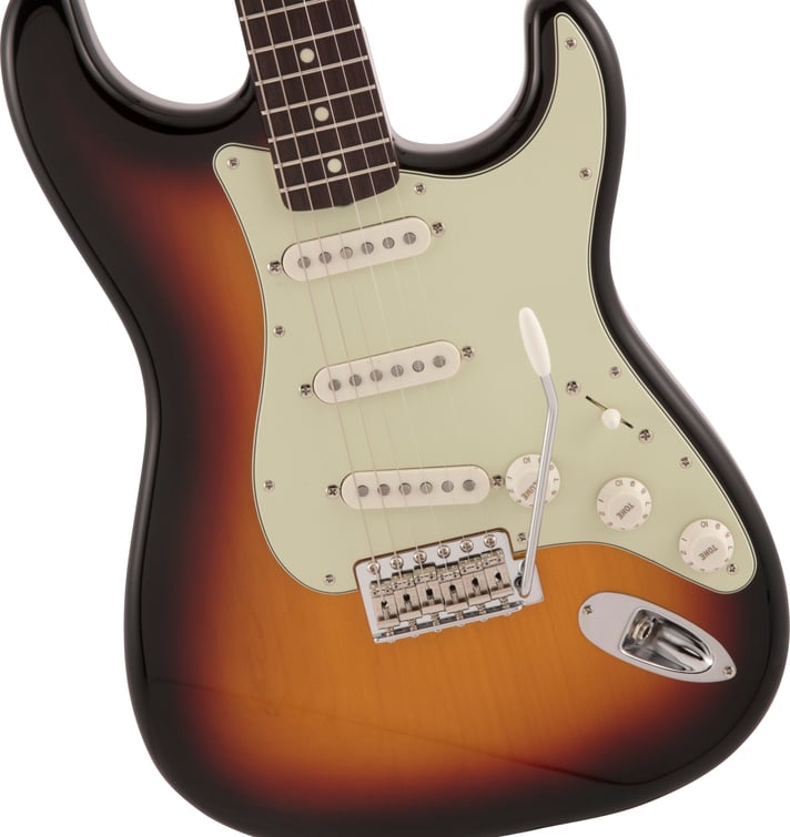 Made in Japan Traditional 60s Stratocaster®はグロスフィニッシュのバスウッドボディを採用。