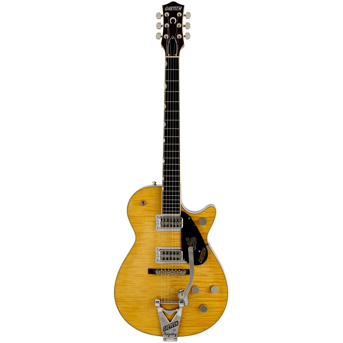 カスタムワウンドのTV Jonesハムバッカーを搭載し、チェンバードマホガニーボディにフレイムメイプルトップを組み合わせた本モデルは、中毒性の高い極上のトーン体験を提供します。